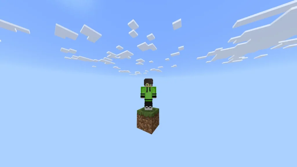 One Block Map — одна из самых популярных карт среди игроков Minecraft. Это карта выживания, на которой плавает один блок, который можно добыть, чтобы получить базовые материалы. Разбивая его, будут созданы разные типы блоков, и уровень продолжит расти. Всего будет 10 уровней, и каждый уровень будет иметь разные сундуки, предметы и мобы. Разные типы блоков требуют достижения разных уровней, например, если вы находитесь на подземном уровне, вы найдете разные типы камней и кирпичей.