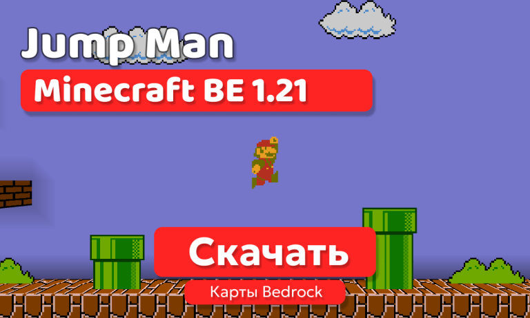 Легендарная игра Super Mario Bros. для Dendy и Sega стала культовой для целого поколения. Её пиксельная эстетика, знакомая поклонникам Minecraft, возвращается в новом формате. Карта Jump Man для Minecraft Bedrock Edition 1.21 переносит на кубический ландшафт самый первый уровень из Марио, даря волну тёплых воспоминаний.