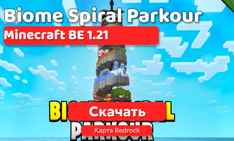 Biome Spiral Parkour — это масштабная паркур-карта, которая проверит ваши навыки прохождения препятствий на прочность. Маршрут пролегает через все биомы Minecraft, а финал ожидает настоящий вызов — сражение с Эндер Драконом на вершине Спиральной Башни.