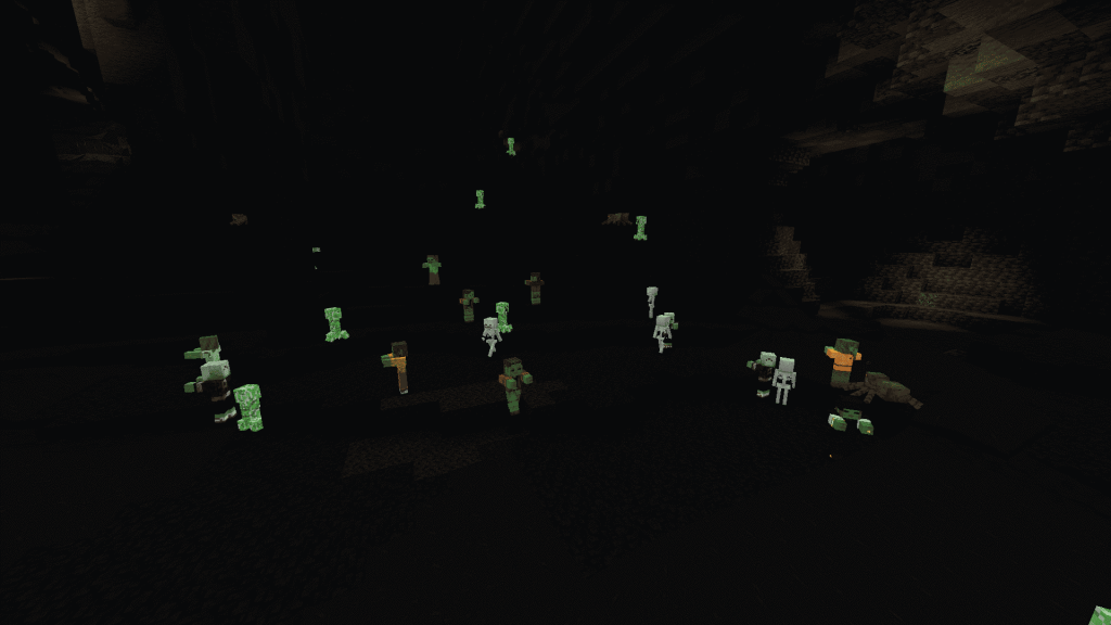 Улучшает игровой процесс, делая всех мобов более заметными в тёмных или слабо освещённых местах. Независимо от того, углубляетесь ли вы в пещеры, переживаете ли ночь или путешествуете по огненным глубинам Нижнего мира, каждое существо будет выделяться ярким свечением. Так вам будет проще заметить враждебных мобов до того, как они доберутся до вас, найти пассивных животных для фарма или просто следить за тем, что происходит вокруг.