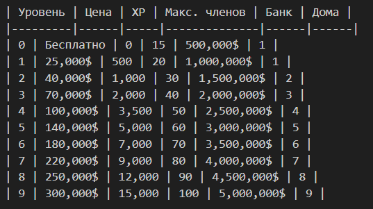 Плагин предоставляет полноценную систему управления кланами с уровнями, экономикой, домами и PvP функционалом.