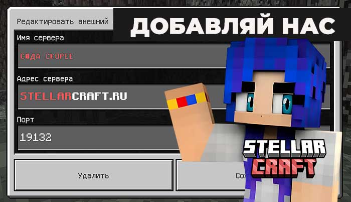 Добавь сервер в Minecraft, IP: StellarCraft.ru || Порт: 19132