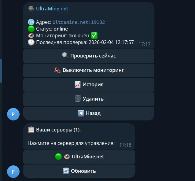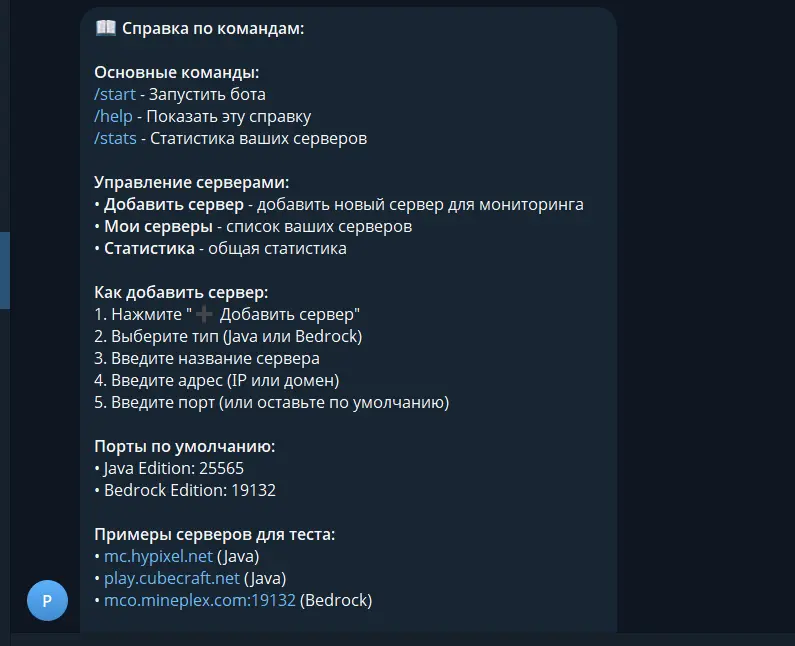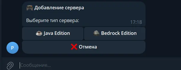 Готовый Telegram Бот Мониторинг серверов Minecraft BE/Java
